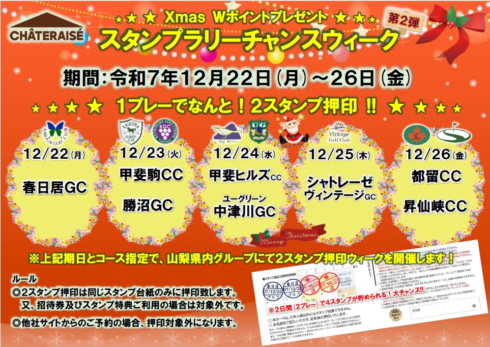 なんと、1プレーでポイント2個押印させていただきます★★